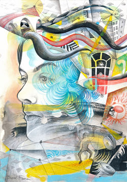 Ik ben altijd nieuwsgierig naar de verhalen achter een gezicht. In mijn portretten wil ik beide kanten laten zien. Welke kleuren passen erbij, welke energie, welke blik in de ogen. Soms verbeeld ik dingen letterlijk, dan weer abstract. Zo ontstaat er een persoonlijk verhaal waarbij binnen en buiten tegelijk in beeld zijn gebracht.